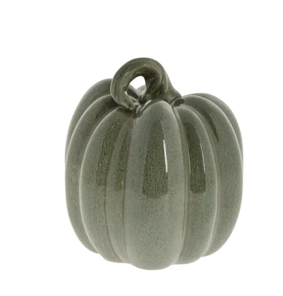 Schaffen Sie eine gemütliche und stilvolle Herbstatmosphäre mit diesem schönen dekorativen Dekoration Kürbis in der Farbe grün. Gefertigt aus glasierter Keramik in einem ruhigen grün Farbton mit feinen Details, bringt es die Formen der Natur auf elegante Weise in Ihr Zuhause. Verwenden Sie es als Teil einer saisonalen Tischdekoration, auf einem Tablett mit Kerzen oder als Solodekoration auf der Fensterbank.