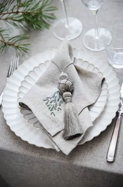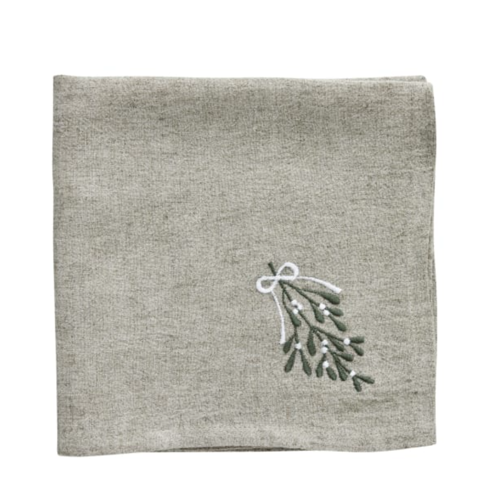 Hergestellt aus weichem, natürlichem Leinen, verfügt dieses Serviette über exquisite, gestickte Details, die zarte Stechpalmenblätter und festliche Motive aus unserem eigenen Design zeigen. Das zeitlose Design und die subtilen Farben machen es zu einer perfektenErgänzung für jede Tischdekoration und ergänzen Ihre Weihnachtsdekoration. Der hochwertige Leinenstoff sorgt für Haltbarkeit, während die feinen Stickereien Ihren Feierlichkeiten eine raffinierte Note verleihen.