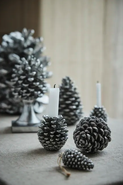 Schöne Polyresin Zapfen Dekoration in der Farbe antik silber von Lene Bjerre.