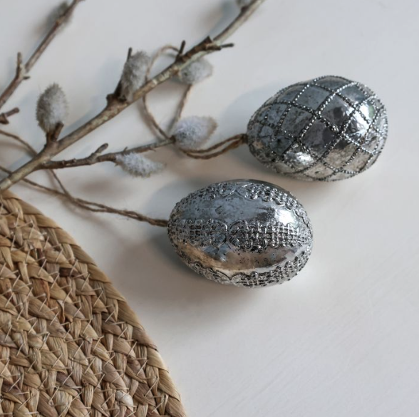 Verleihen Sie Ihrem Zuhause einen Hauch von zeitloser Eleganz. Diese dekorativen Eier in edlem antique silber begeistern mit ihrer kunstvollen Oberflächenstruktur und dem charmanten Used-Look. Ob auf dem Ostertisch, in einer stilvollen Frühlingsdekoration oder als ganzjähriger Blickfang im Wohnbereich, mit diesen Schmuckstücken setzen Sie geschmackvolle Akzente.
