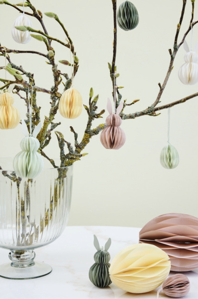 Dieser österliche Anhänger in der Farbe weiss besteht aus Papier, um sicherzustellen, dass er leicht und langlebig ist. Er ist mit einem Magneten ausgestattet, der das Aufklappen erleichtert. Nach Ostern können Sie ihn zusammenfalten, sodass er bis zum nächsten Gebrauch nur minimalen Platz einnimmt.