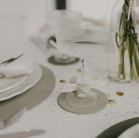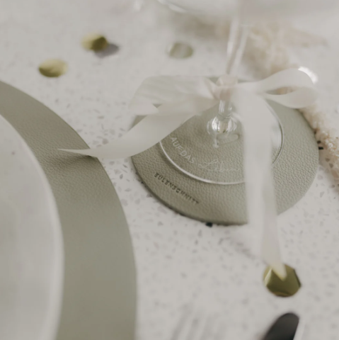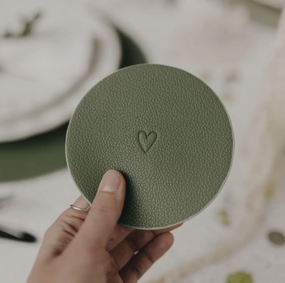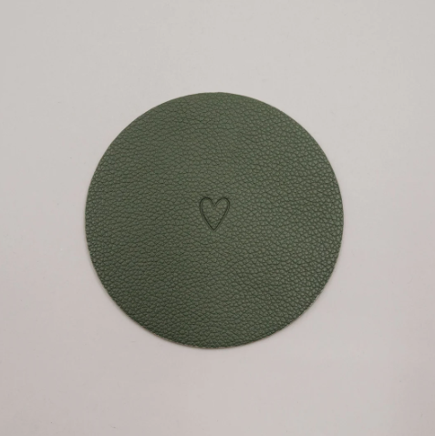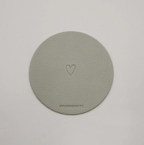 Beide Untersetzer sind beidseitig verwendbar und mit einem fein eingeprägten Herzmotiv versehen, das jedem Moment einen besonderen, warmen Akzent schenkt. Auf einer Seite findest du zusätzlich unser dezentes Eulenschnitt-Logo, das dem Design eine hochwertige, unaufdringliche Signatur verleiht. Die beiden Grüntöne harmonieren wunderbar miteinander und passen sich mühelos unterschiedlichen Tischdekorationen – von frisch und modern bis hin zu gemütlich und natürlich – an.