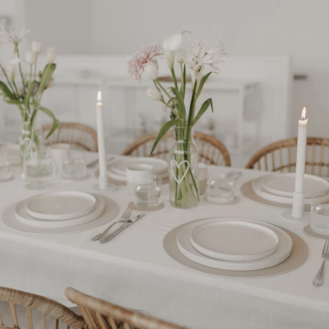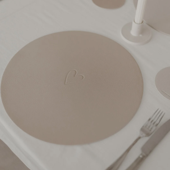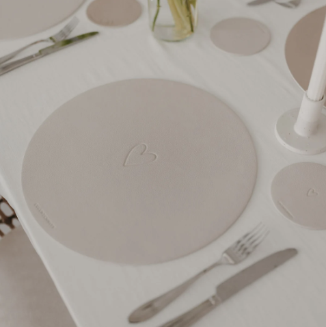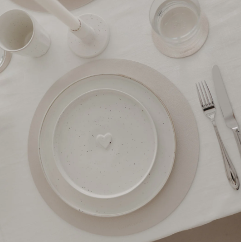 Bringe Wärme, Stil und eine sanfte Natürlichkeit auf deinen Tisch – mit dem wendbaren Platzset Herz Creme von Eulenschnitt. Ob beim gemeinsamen Frühstück, beim Feiern eines besonderen Moments oder als dekorativer Akzent im Wohnraum: Dieses runde Platzset verleiht jedem Arrangement eine ruhige, harmonische Ausstrahlung.
