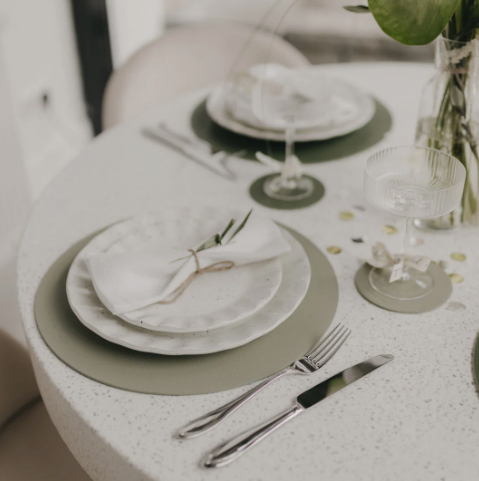 Mit einem Durchmesser von 35 cm bietet das Platzset ausreichend Fläche, um Teller, Gläser oder dekorative Elemente wunderschön zu arrangieren. Die angenehm glatte Oberfläche ist pflegeleicht, langlebig und formstabil, sodass es sowohl im Alltag als auch zu besonderen Anlässen eine verlässliche Begleitung ist.