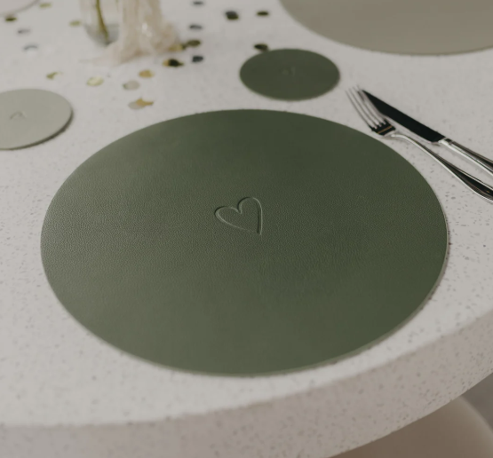 Bringe frische Natürlichkeit und eine sanfte Portion Herzenswärme auf deinen Tisch – mit dem wendbaren Platzset *Herz* Grünvon Eulenschnitt. Ob beim täglichen Essen, einer frühlingshaften Tischdekoration oder als stilvolles Detail auf dem Sideboard: Dieses runde Platzset setzt überall einen wundervollen Akzent.