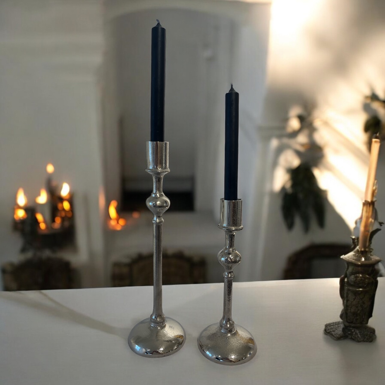 Dekotipp: Dekorieren Sie zwei Kerzenständer oder mehrere unterschiedliche Größen miteinander auf Ihrem Tisch oder Ihrer Anrichte – ein Traum.