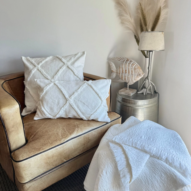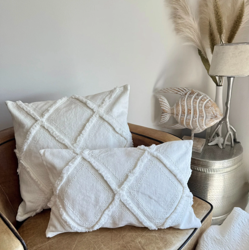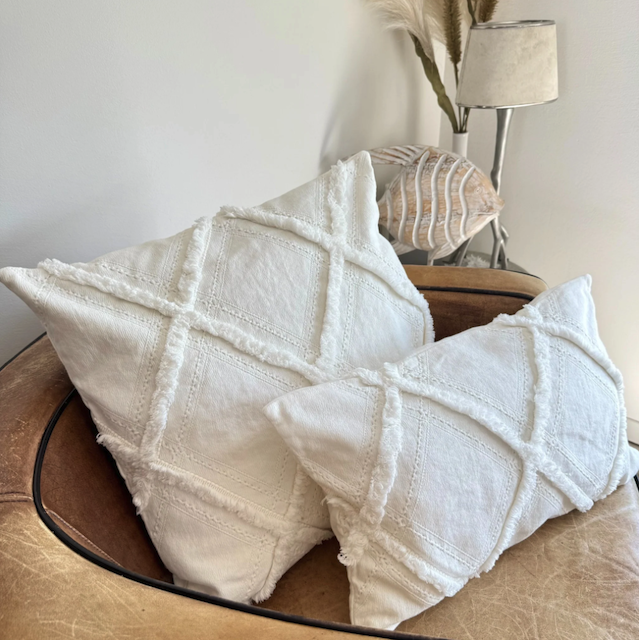 Verleihen Sie Ihrem Zuhause einen Hauch von Eleganz mit der Kissenhülle Boho Fransen mit feiner Lochstickerei umrandet in Offwhite. Diese hochwertige Kissenhülle ist sowohl stilvoll als auch praktisch und setzt dekorative Akzente in jedem Raum. Mit ihrer Grösse von 30 x 50 cm ist sie perfekt geeignet für Sofas, Sessel oder Betten. Die Kissenhülle lässt sich wunderbar mit anderen Kissen aus unserer Kollektion kombinieren oder auch als Einzelstück, um einen harmonischen Look zu erzeugen.