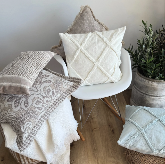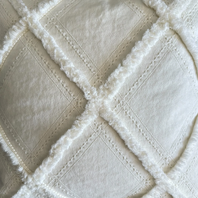 Kombinieren Sie die Kissenhülle Boho mit Ihren Lieblingsstücken und schaffen Sie ein individuelles Wohnambiente. Durch ihr dezentes Offwhite harmoniert sie perfekt mit nahezu jedem Einrichtungsstil und setzt dabei gleichzeitig edle Akzente. Im gleichen Design gibt es das Kissen auch in Aqua Blue. Unsere Designs sind darauf ausgerichtet, Ihr Zuhause stilvoll und einzigartig zu gestalten.