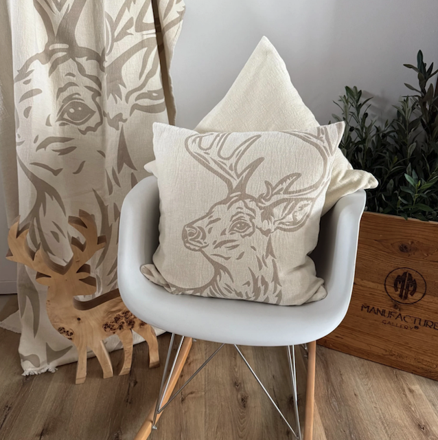 Kissenhülle Chenille *Hirschportrait* 49 x 49 cm